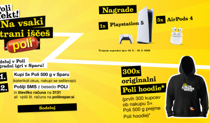 Pozor, srečnice in srečneži, na tej strani obstaja velika nevarnost, da prejmete nagrado. Vse Poli nagradne igre so zbrane na enem mestu, a priznajmo si – največja sreča je zavita v rjavo embalažo z rumenim napisom Poli. Vse ostalo je le prijeten dodatek k dobremu dnevu.
